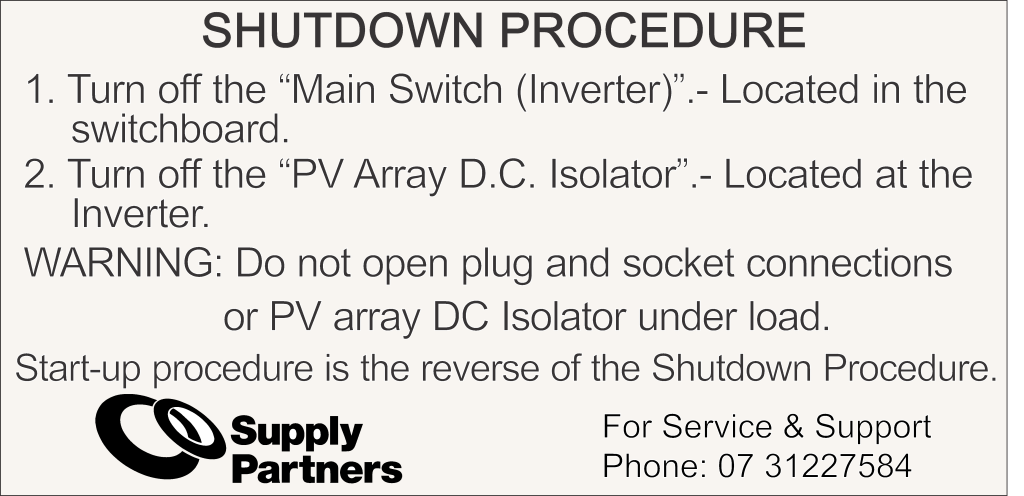 Shutdown procedure labels are able to be branded as required with your logo and contact details.